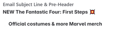 I lead email marketing strategy and copy for Spencer’s and Spirit Halloween, from monthly theme ideation to campaign execution. Each email starts with a creative concept—and I write everything from subject lines and headlines to CTAs, SMS, and supplemental copy. I also monitor open and conversion rates through internal dashboards and A/B testing to refine what resonates with our audience. Scroll through to explore some of my work, including finished emails, subject lines, and preheader samples.
